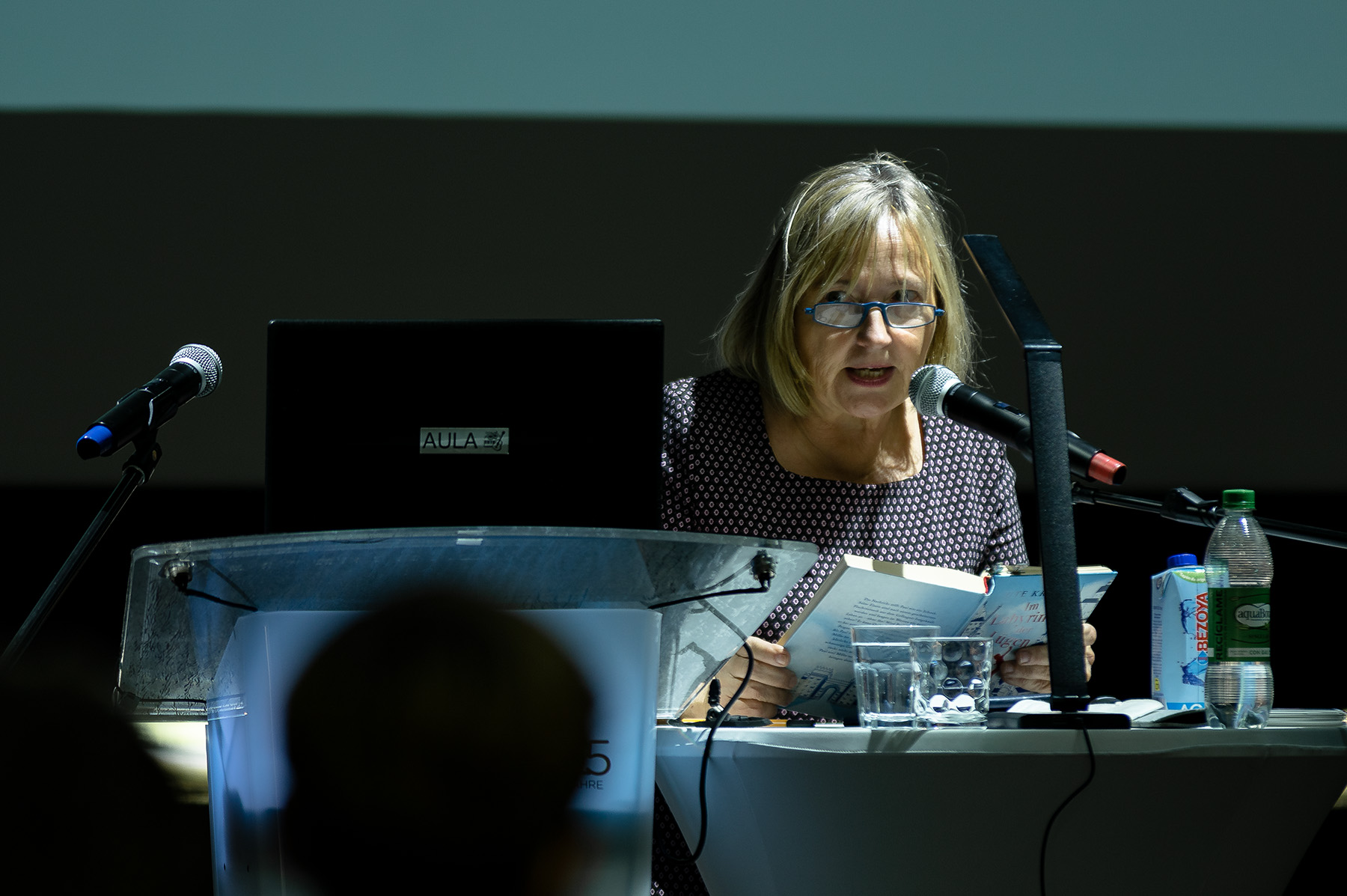 Die zweite Dezemberwoche stand an der Deutschen Schule Madrid ganz im Zeichen der Literatur, reiste nicht nur der Autor Michael Kumpfmüller zu einer Lesung nach Madrid, sondern auch die bekannte Kinderbuchautorin Ute Krause. Sie ist Autorin vieler Kinderbücher, die sie auch selbst illustriert. Viele ihrer Bücher wurden bereits und werden derzeit verfilmt. Die Deutsche Schule Madrid hatte das Glück, Ute Krause für gleich zwei Schülerlesungen zu gewinnen. Schülerinnen und Schüler der Klassen 7a bis 7d konnten in zwei aufeinanderfolgenden Lesungen in der Aula der Autorin bei ihrer Lesung aus ihrem Buch „Im Labyrinth der Lügen“ lauschen. Das Buch spielt in den 1980er Jahren und handelt von einem Jungen, dessen Eltern versucht hatten, aus der DDR zu fliehen und dabei verhaftet wurden. Die Schülerinnen und Schüler folgten gebannt der Lesung und erfuhren dabei viel über die deutsche Vergangenheit und die DDR. Ute Krause gewährte den Schülerinnen und Schülern auch Einblick in die Entstehung ihres Buches. Die persönlichen Erfahrungen einer Freundin in der DDR inspirierten die Schriftstellerin zu weiteren Recherchen und zum Schreiben dieses Buches. Im Anschluss an die Lesung hatten die Schülerinnen und Schüler viele Fragen an die Autorin und es entstand ein lebhafter Austausch untereinander. Die Schülerinnen und Schüler waren begeistert von der Lesung und viele freuten sich darauf, das Buch in den Weihnachtsferien zu Ende zu lesen. Die Deutsche Schule Madrid dankt Ute Krause sehr herzlich für diesen spannenden Einblick, den sie den Schülerinnen und Schülern in ihr bewegendes Buch und die Hintergründe seiner Entstehung gegeben hat